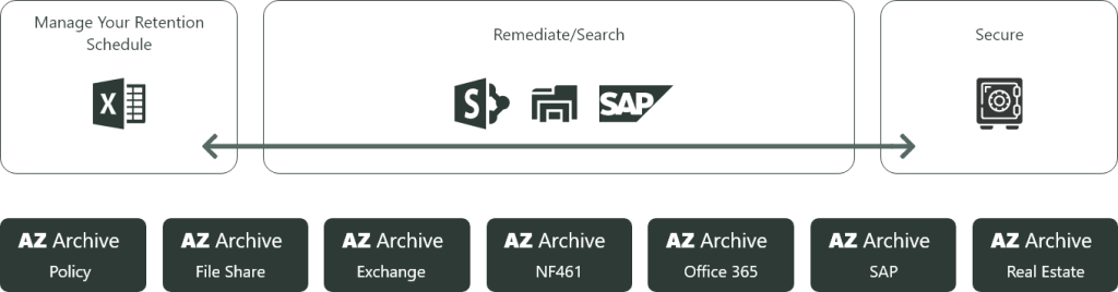 “AZ Archive for you are concrete solutions to locate and clean up your digital bulk, manage your emails, connect your applications and manage the life cycle of your documents”